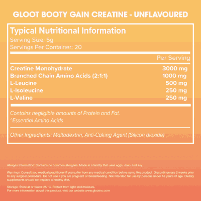 Gloot Booty Gain Creatine – Unflavoured 100g