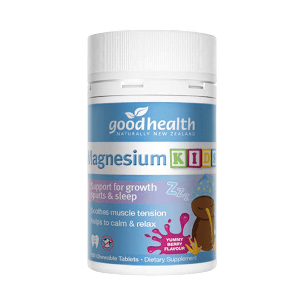 Magnesium Kids is vital for every cell in growing bodies, supports kids during growth spurts, soothes muscle tension and supports total well-being for a better night’s sleep by helping to calm and relax busy minds and bodies. Magnesium Kids contains vitamins C, D and Zinc to help support developing strong bones in a delicious berry flavoured chewable tablet.