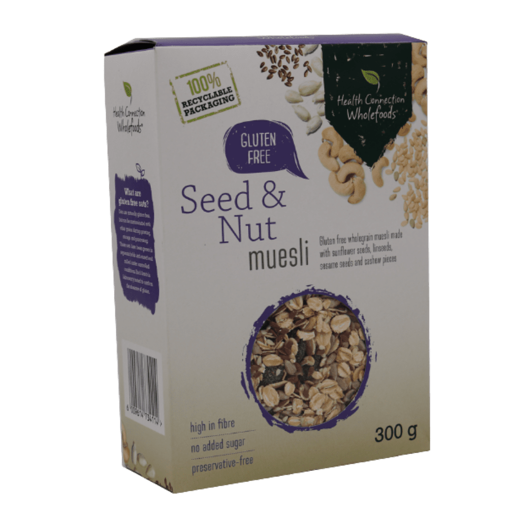 Health Connection brings you a flavour-packed, highly nutritious alternative to ordinary sugar-loaded cereals. This crunchy muesli blend is packed with health-giving seeds and nuts, in a base of gluten-free rolled oats. Your whole family will enjoy this hearty, versatile breakfast cereal, which is great with yoghurt, honey and fresh fruit.