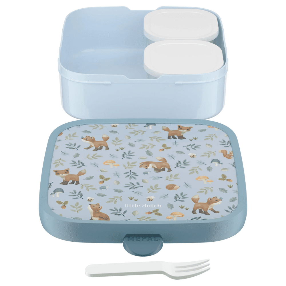 Every lunch an adventure. The extra-large lunchbox with the cute Forest Friends print from Little Dutch is perfect for little eaters with big appetites. Thanks to the two removable bento boxes and the included fork, you can effortlessly take bread, fruit, or a snack to school or on the go. The transparent, leak-proof containers keep everything fresh and separate. If you only have sandwiches with you one time, you can simply remove the containers and use the entire box. The lunchbox and containers are dishwasher safe, and the bento boxes can even go in the microwave without the lid. Sturdy, easy to open for kids, and featuring cheerful forest animals that transform every lunchbox into a cozy dining moment.