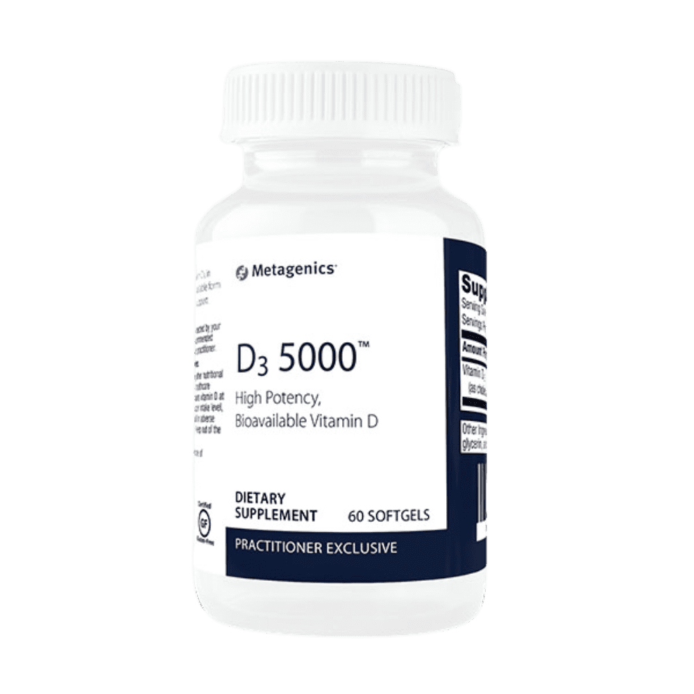 Metagenics D3 5000™ features 5,000 IU of vitamin D3 in easy-to-swallow softgels. This bioavailable form of vitamin D is solubilized in oil to support absorption in the intestinal tract.