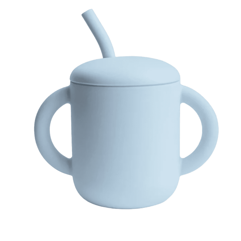 Mushie Silicone Training Cup + Straw – Powder Blue