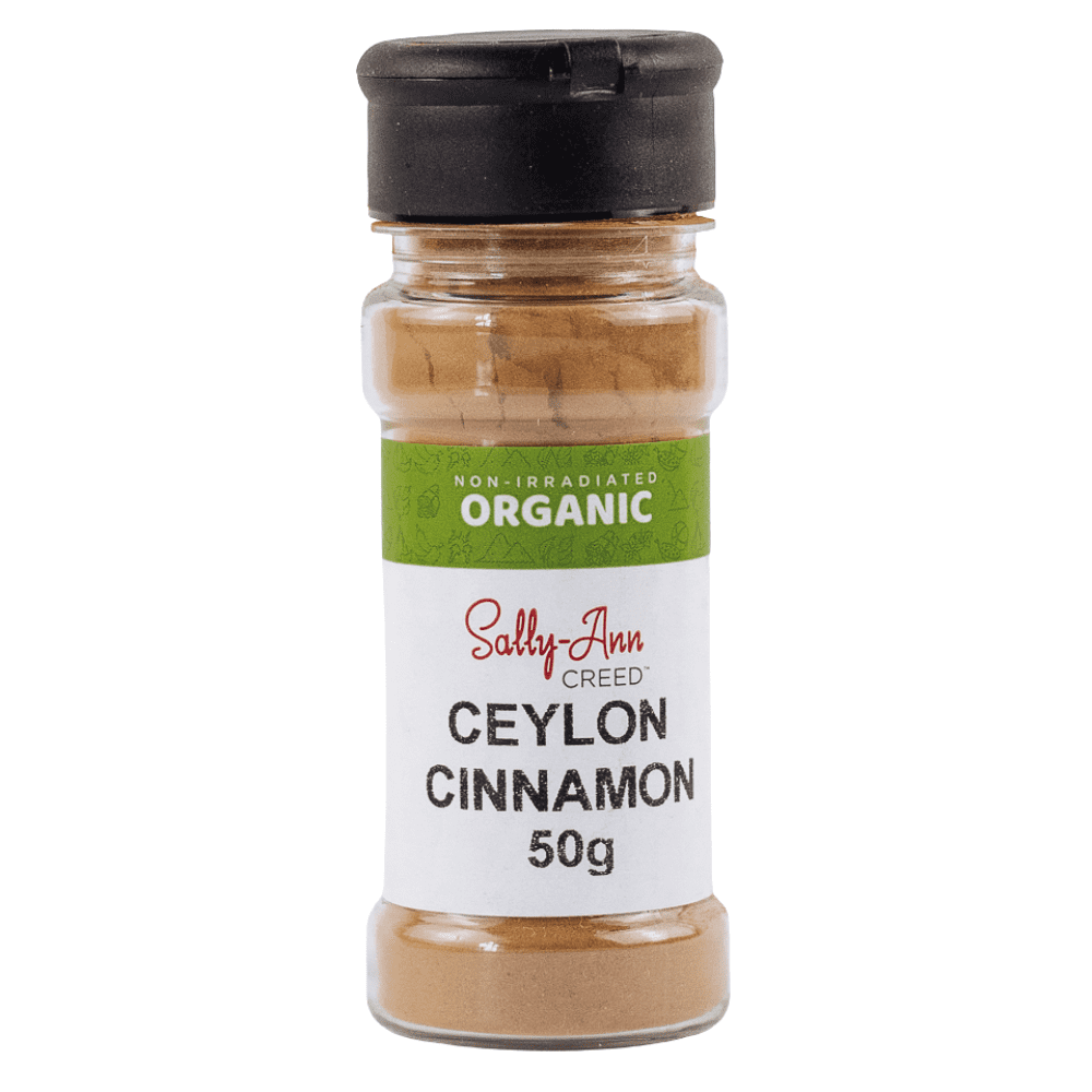 Cinnamon, the warming spice we all know and love, comes from the branches of trees from the Cinnamomum family. It can be incorporated in both sweet and savory cooking, and provides a wonderful aroma to any room. This incredible spice has been used for centuries, owing to its antioxidant, antiviral, antibacterial and anti-inflammatory properties. Research suggests that this wonderful spice can assist with blood sugar regulation, has cardiovascular health benefits, and assist with insulin regulation which is particularly beneficial for those suffering from metabolic syndrome or type 2 diabetes. Our Sally-Ann Creed Cinnamon can be purchased either in a non-irradiated, non-GMO form or organic, sourced from Sri Lanka – both are an ideal compliment to your cooking! Did you know that Ceylon cinnamon is only classified as “Ceylon” when it originates from Sri Lanka, formally known as Ceylon. Our organic cinnamon is sourced from Sri Lanka and is therefore Ceylon cinnamon. Our non-irradiated cinnamon is subject to crop, and is sourced from Malaysia, Indonesia, or Vietnam. It is therefore called Ground Cinnamon.