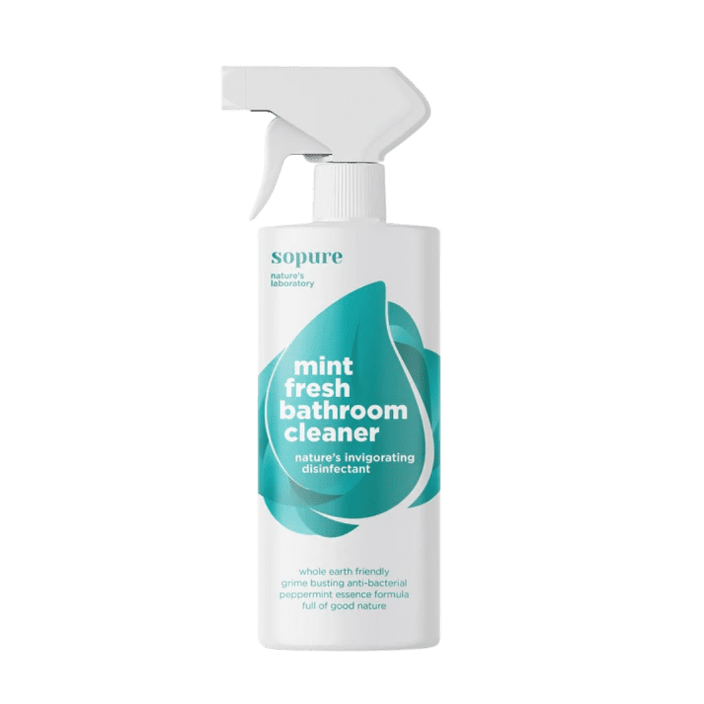 SoPures Mint Fresh Bathroom Cleaner powerfully disinfects, and sanitises bathroom surfaces leaving them sparkling clean. This Mint Fresh Bathroom Cleaner is scented with freshening peppermint essential oil and is made from 97% naturally derived ingredients. Made without parabens, phthalates, and ammonia this household essential is non-toxic and doesn’t leave behind any harsh fumes.